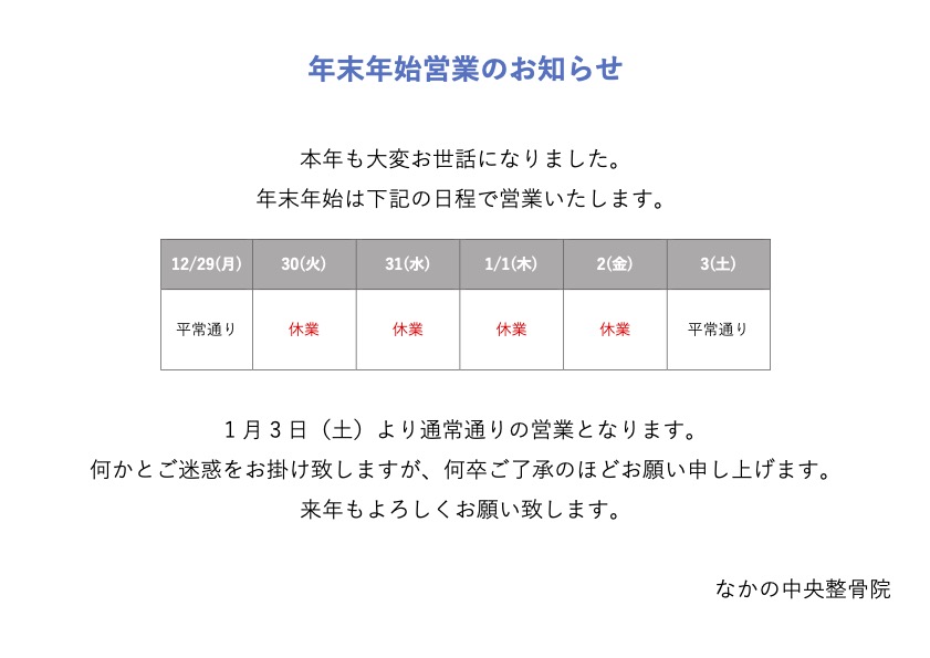 症状が重い方もしくは長期間に及び、体の不調に悩む方に関しましては、根本的な原因を改善するために、3ヵ月前後のお時間を頂いております。